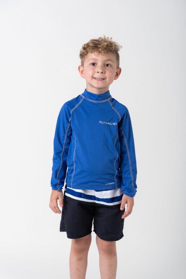 Este buzo infantil Nado para niño brinda protección contra el sol, es ligero y práctico, ideal para playa y actividades al aire libre. Cuenta con cierre frontal, lo que permite que los niños puedan ponérselo y quitárselo fácilmente por sí mismos, fomentando su independencia y comodidad.